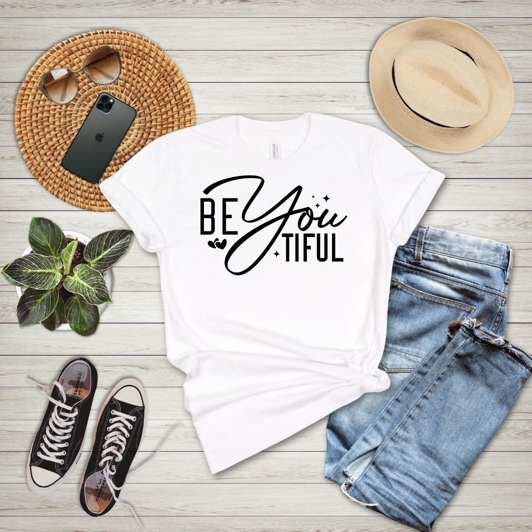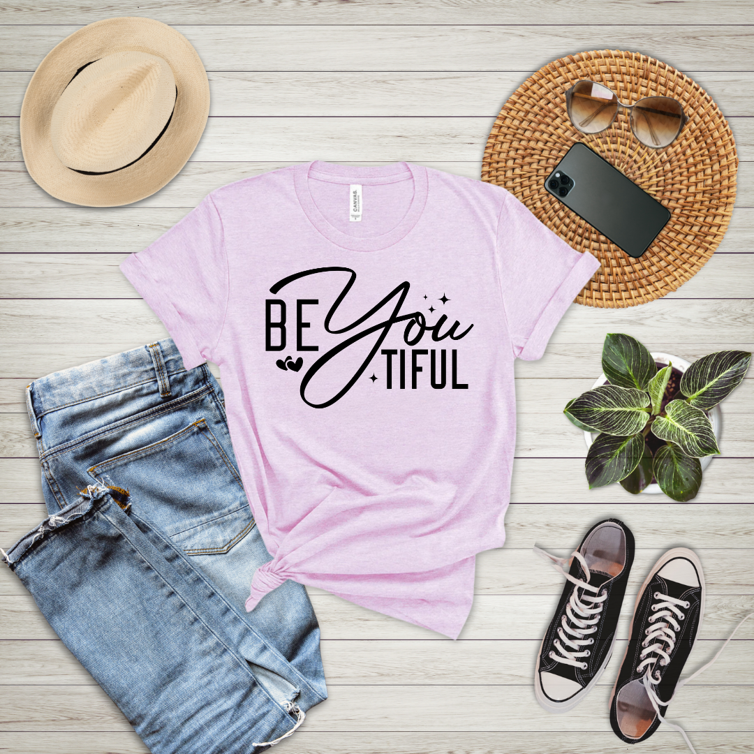Step into confidence and positivity with this Be You Tiful tee! Designed for comfort and motivation, this ultra-soft tee keeps you feeling empowered throughout your day. Whether you're running errands, hitting the gym, or relaxing at home, this shirt is the perfect reminder to stay focused and inspired. A stylish essential for yourself or a thoughtful gift for someone special!