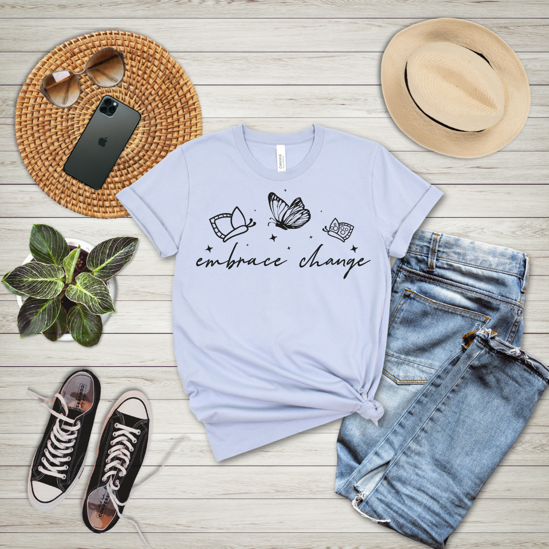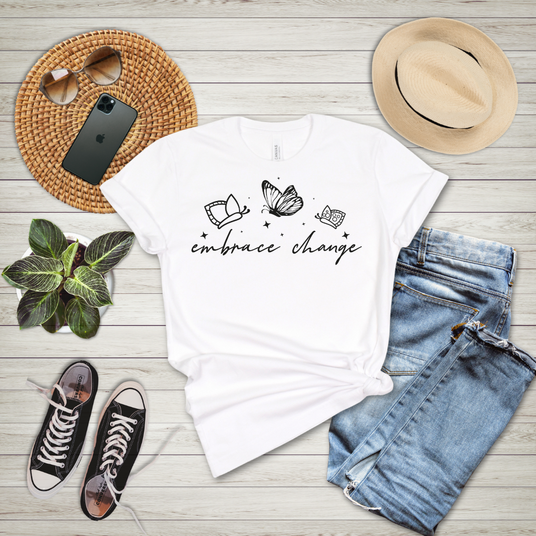 Step into confidence and positivity with this Embrace Change tee! Designed for comfort and motivation, this ultra-soft tee keeps you feeling empowered throughout your day. Whether you're running errands, hitting the gym, or relaxing at home, this shirt is the perfect reminder to stay focused and inspired. A stylish essential for yourself or a thoughtful gift for someone special!