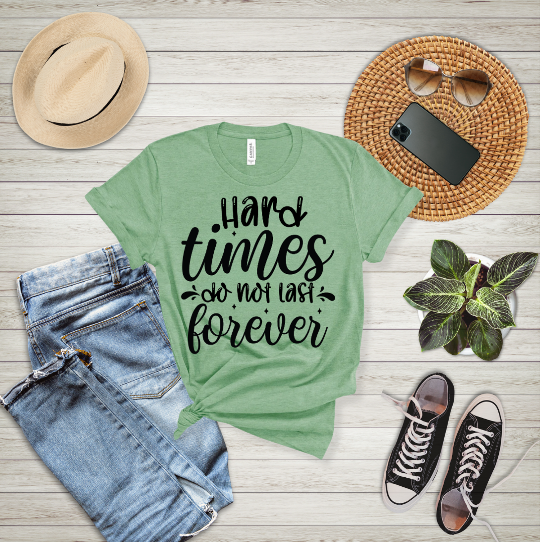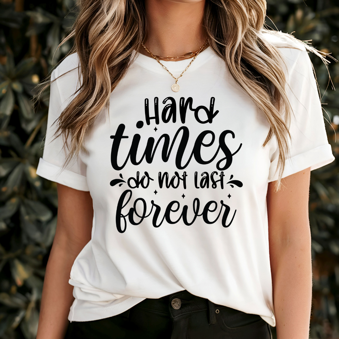 Step into confidence and positivity with this Hard Times Do Not Last Forever tee! Designed for comfort and motivation, this ultra-soft tee keeps you feeling empowered throughout your day. Whether you're running errands, hitting the gym, or relaxing at home, this shirt is the perfect reminder to stay focused and inspired. A stylish essential for yourself or a thoughtful gift for someone special!